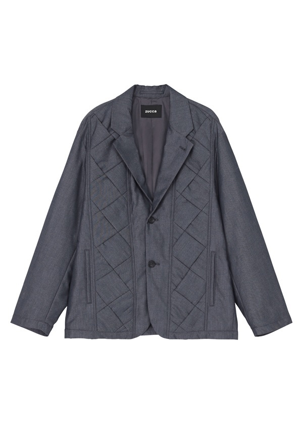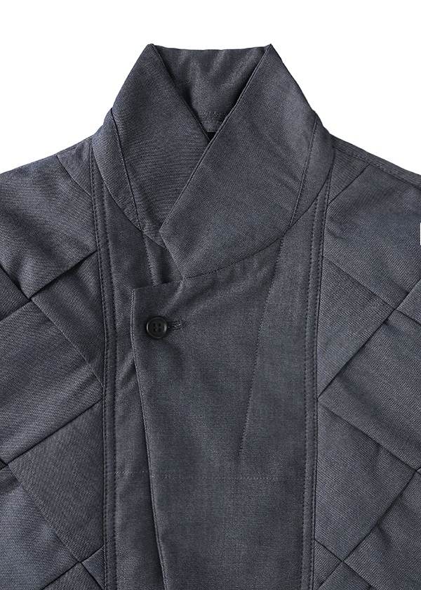 -前身頃に短冊状の生地を交互に編み込んだ立体的なデザインテーラードジャケット。