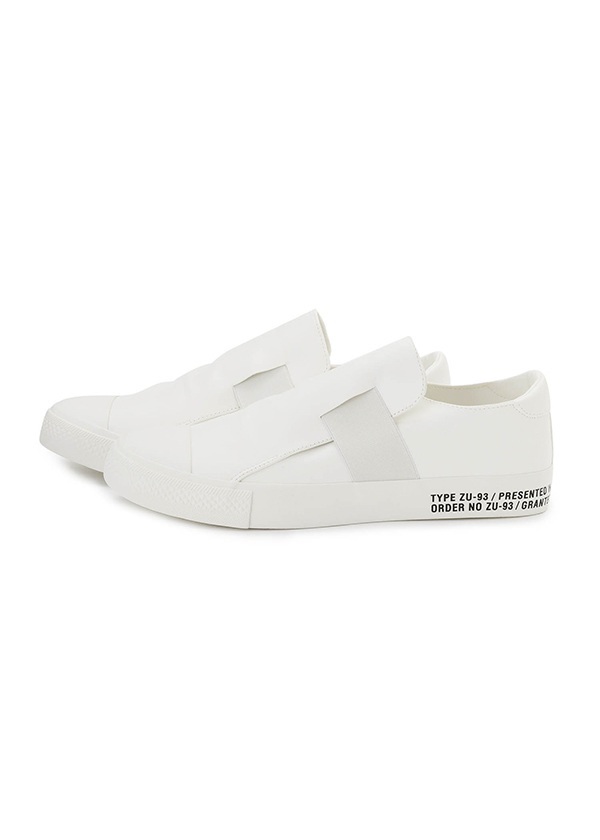 柔らかい合皮で仕上げたクリーンな印象のスリッポン型のスニーカー。