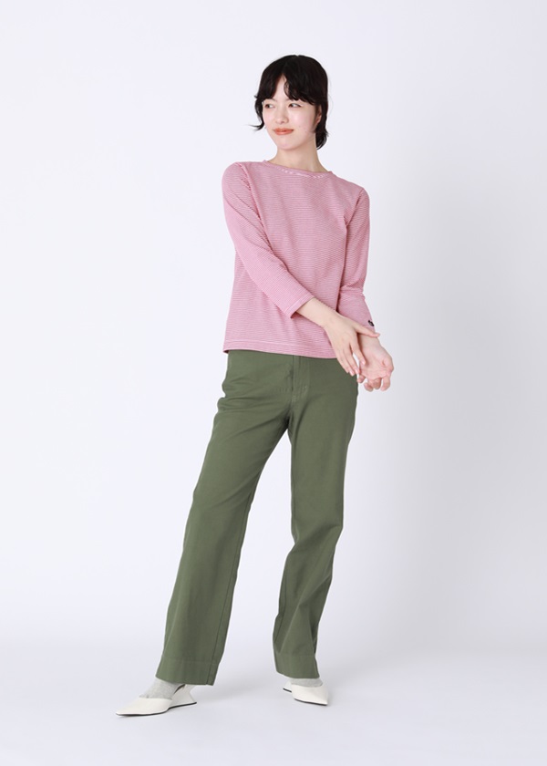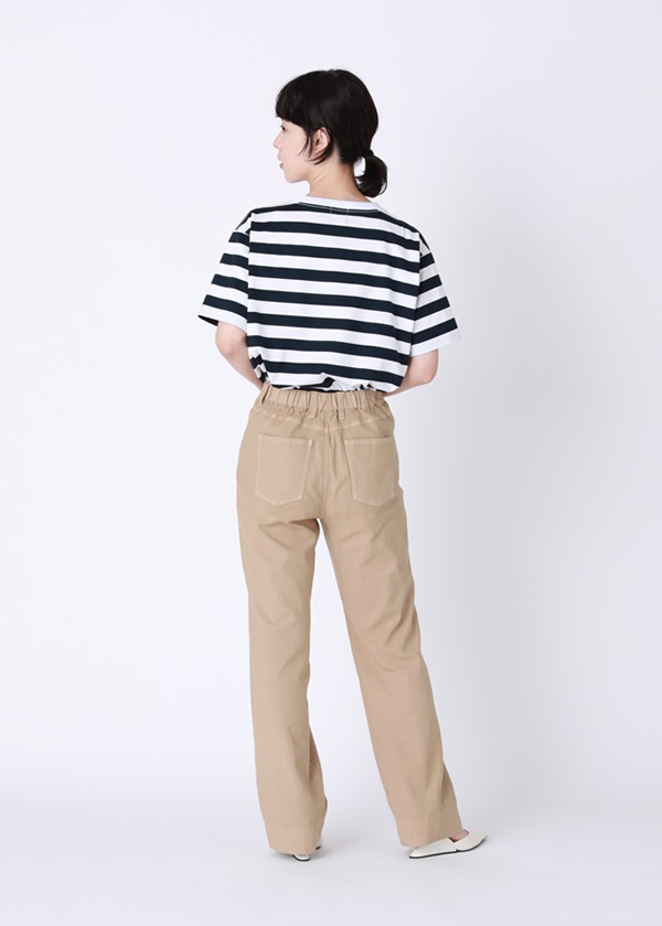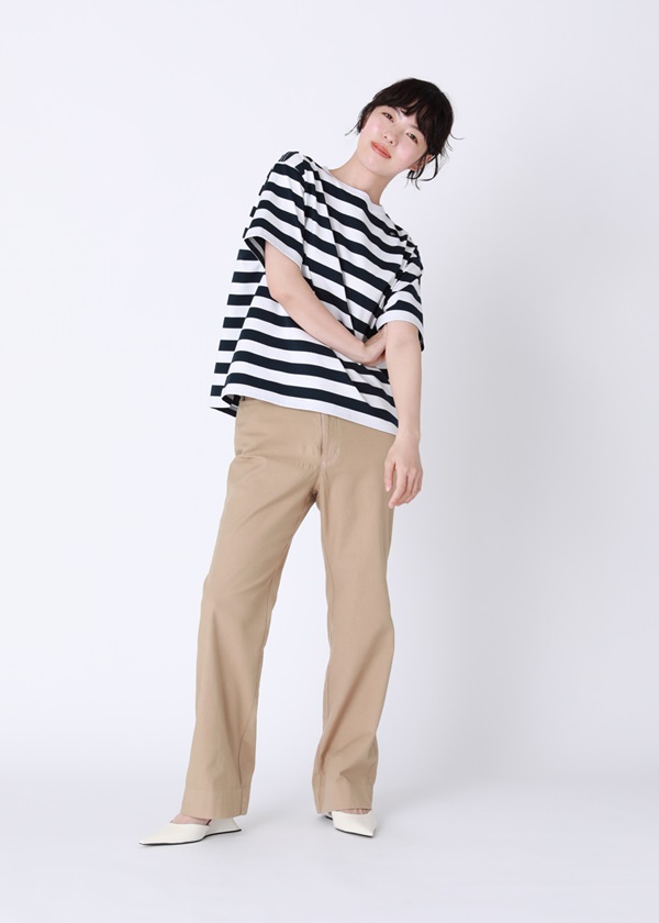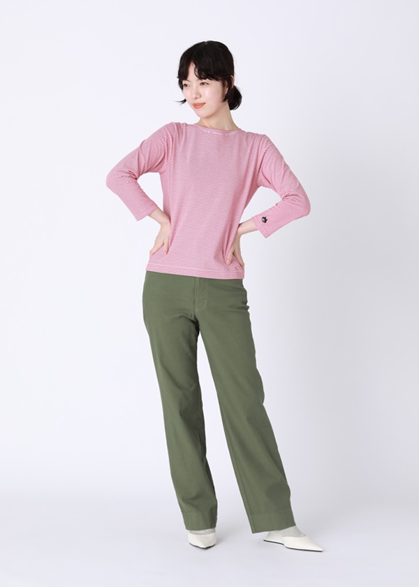 ・股上がやや深めでジャストウエスト。また膝から下を少しだけフレアデザインにしているので、脚のシルエットがきれいに見えるように工夫しました。
