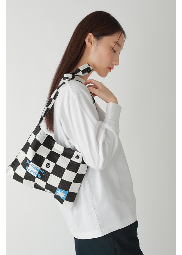 【NYA- collaboration with aimi odawara】・イラストレーター小田原愛美さんデザインのサコッシュバッグ。・愛美さんが約10年前にご自身でデザインされたサコッシュバッグからインスピレーションを受け、NYA-らしさを乗せてリバイバル。・チェックの柄に合わせるようにデザインしたプリントの配置や、ショルダー部分までチェック柄が綺麗に出るよう、細部までこだわりました。・内側ポケットが1つついています。・NYA-の刺繍と愛美さんのアイコン「スマイル」を刺繍し、ユニークでスペシャルなデザインです。・ユニセックスデザインで、ギフトにもおすすめです。ショルダーはお好きな長さでくるっと結んでご使用いただくスタイルもおすすめです。インタビュー「NYA-とのコラボレーションに込めた、アーティスト・小田原愛美の想い。」はこちら【小田原愛美】 おだわら あいみアーティスト・デザイナー1988年東京生まれ。2012年、初の個展「PLAYING DEAD」を開催し、イラストレーターとしてのキャリアをスタートさせる。数々の有名ブランドとのコラボレーションや開催した個展が話題に。2014年には、自身の作品を洋服にしたブランド「I&ME」を立ち上げ、ユニセックスなデザインで人気を博す。どこか冷静な目線で、シニカルな作品が多い。年々進化を続けながらも、揺るがないその作風に、コアなファンを多く抱える。日本製※商品のカラーは、商品単体の画像をご参照ください。在庫切れの場合「再入荷リクエスト」をお申し込みいただくと再入荷した際にメールでお知らせをします。