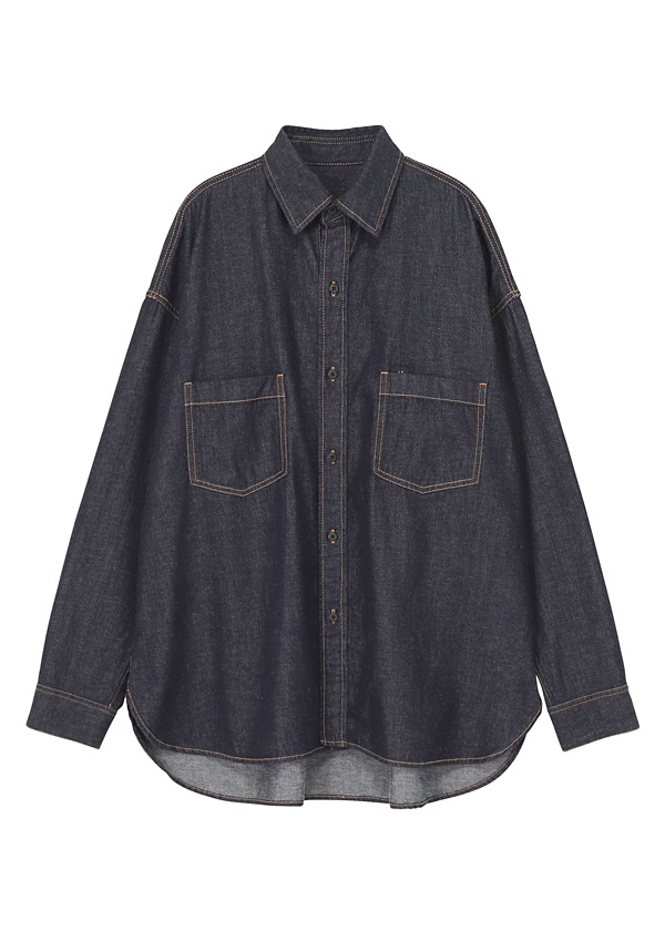 ・装いが軽やかになる季節にすっきりとお召しいただける、デニム素材の前開きシャツ。