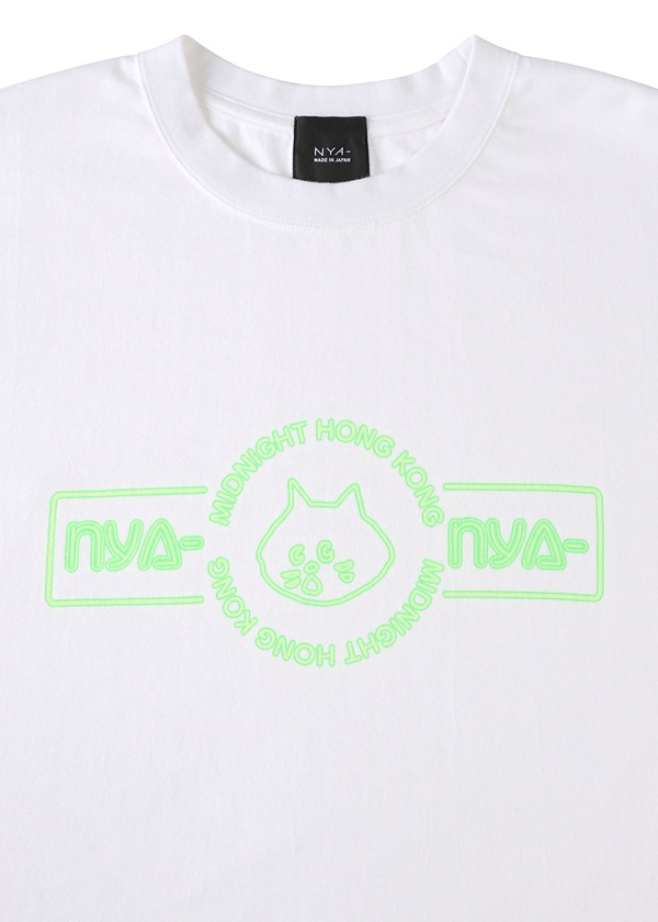 ・香港のネオン街を思わせるNYA-のグラフィックをプリントしたTシャツ。