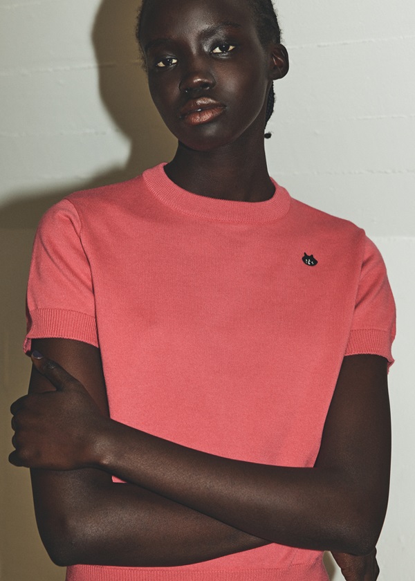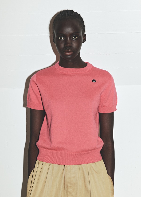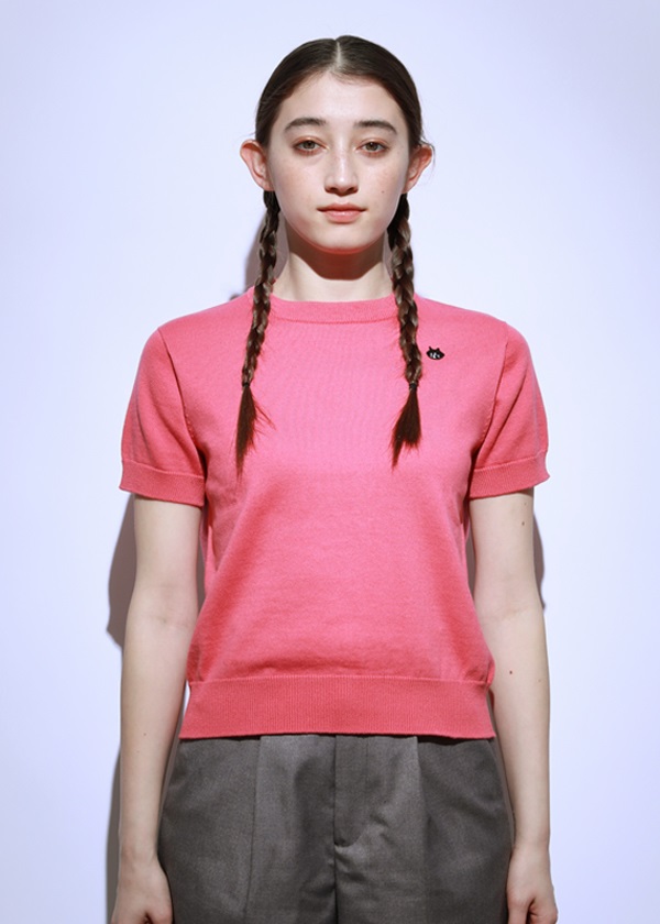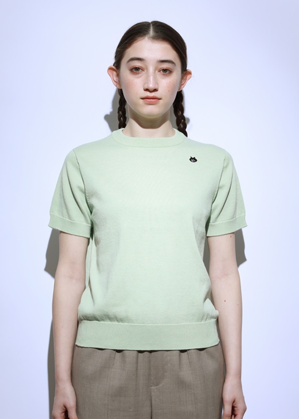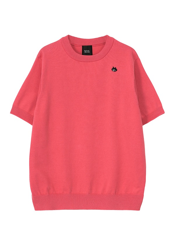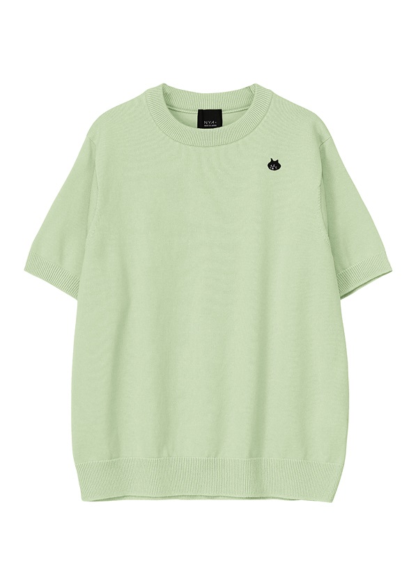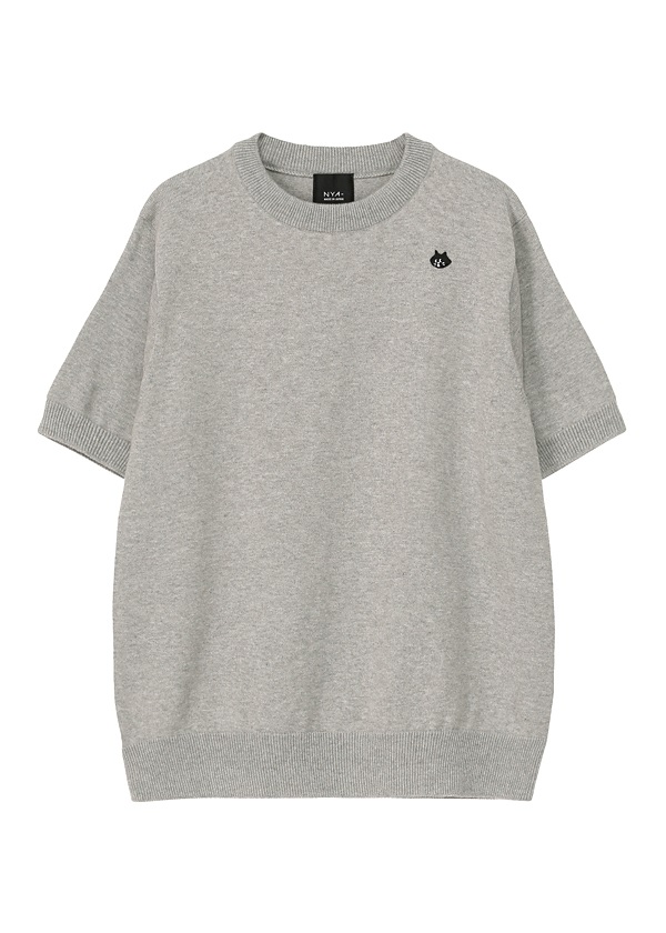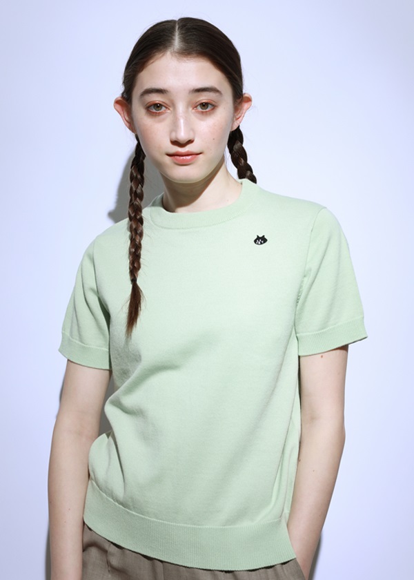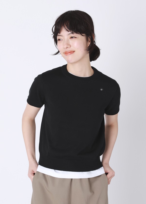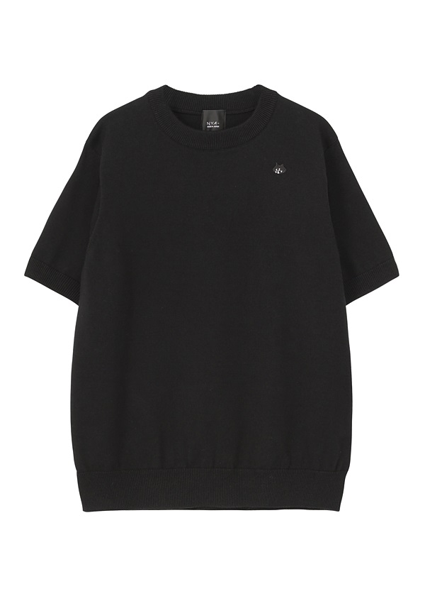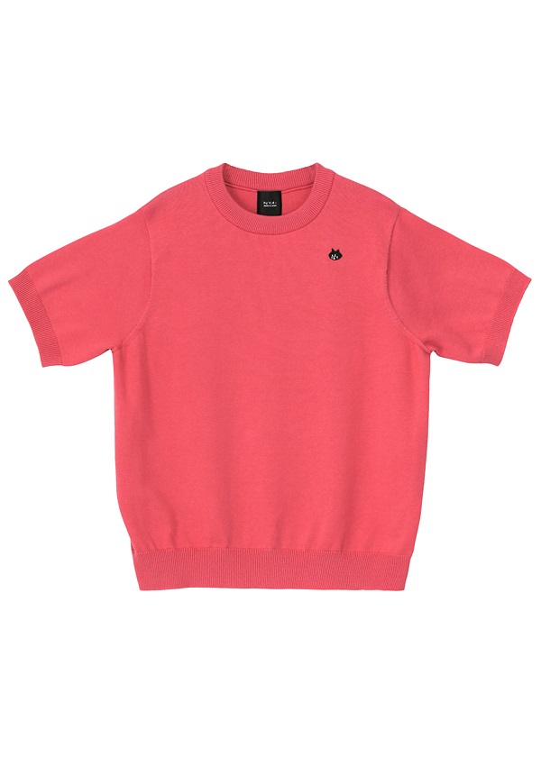 ・NYA-のワッペンがユニークな位置に施されたコットン素材のホールガーメントニットトップス