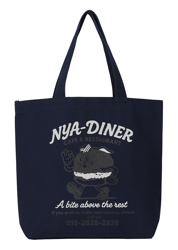 ・架空のアメリカンダイナーのグラフィックをプリントしたトートバッグ