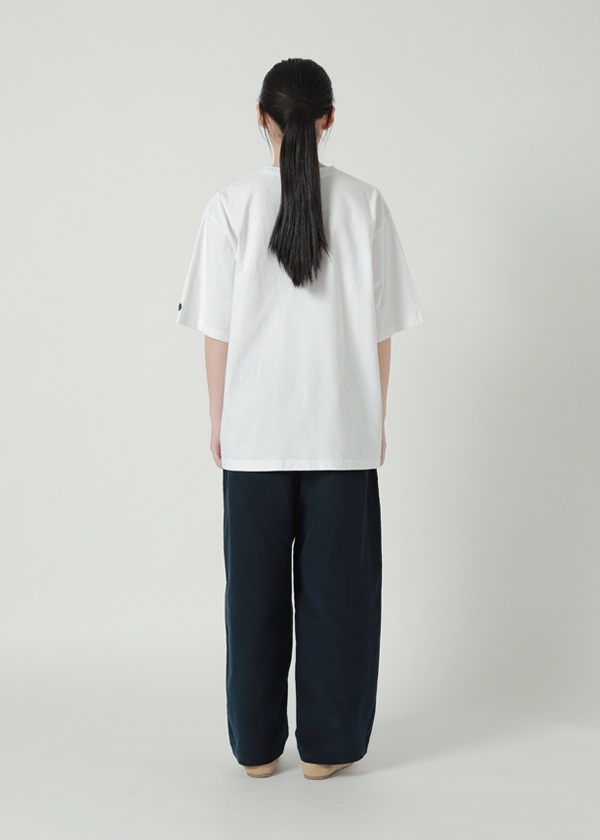 ・身幅や袖丈のゆとりに対して、少しだけ長さを短めに調節したメリハリのあるシルエット。