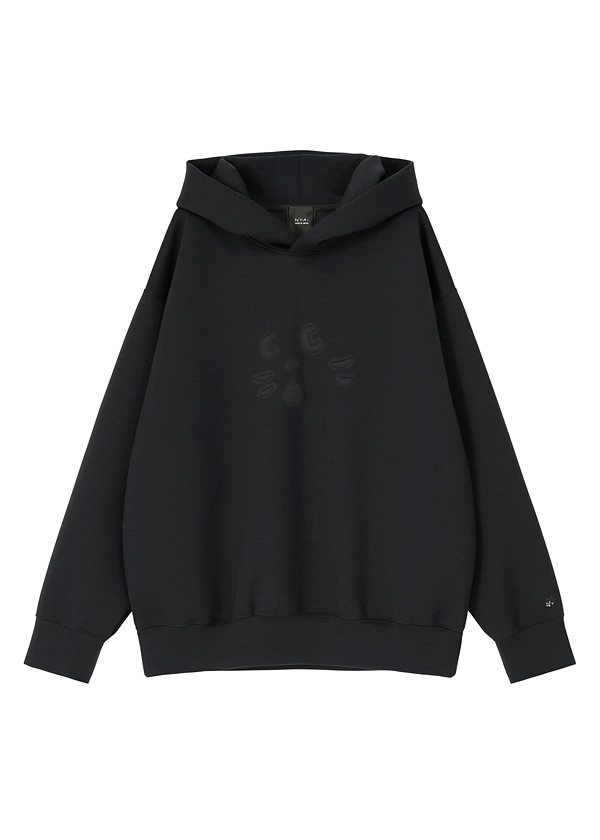 ・エンボス加工でNYA-の顔パーツを立体的に表現したフーディー。