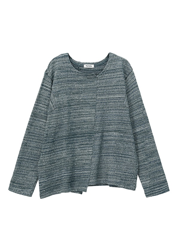 素材感を活かしたシンプルなプルオーバー。身頃に適度なゆとりがあることでボディラインを拾わす、一枚でも重ね着でもすっきりと着こなしていただけます。