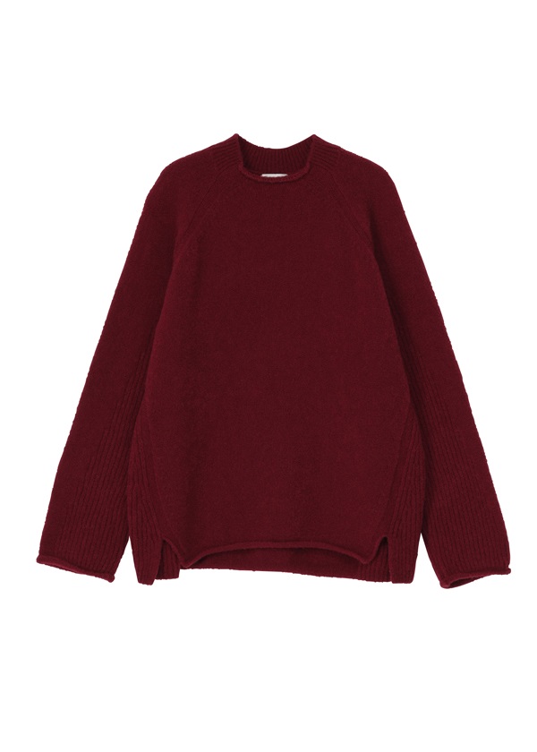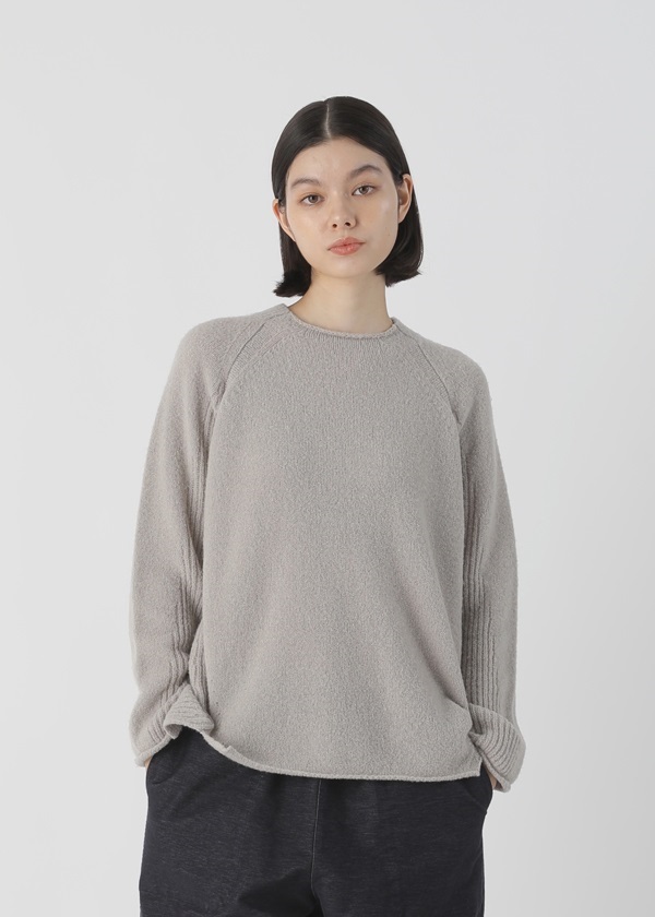 エクストラファインウールを使用したブークレヤーンを使用することで空気が含まれ、非常に軽くやわらかい仕上がりになっています。編み組織をミックスすることで表情感を出しています。