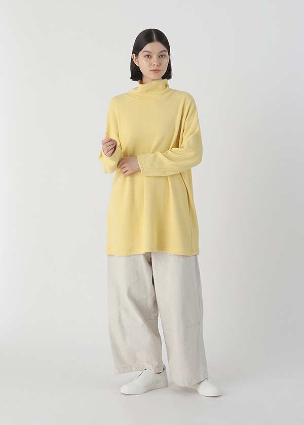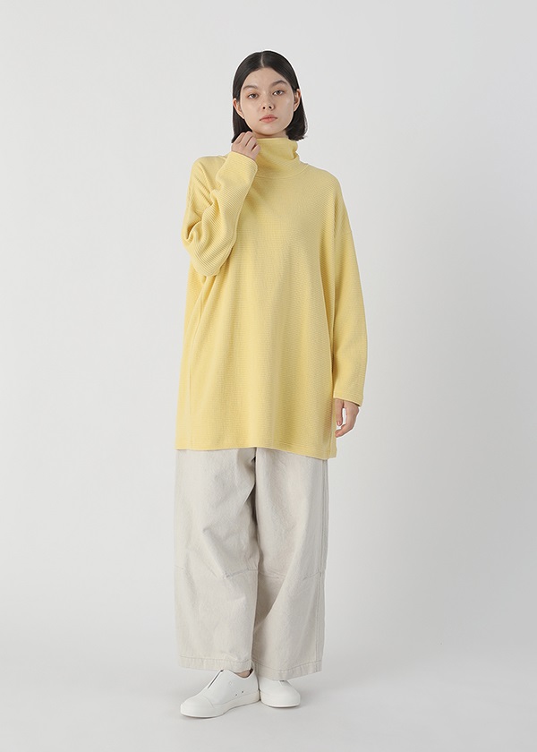 素材の表情感を活かしたシンプルなタートルネックのチュニック。気になる腰回りをカバーしてくれるデザインで、合わせるボトムを選ばず、毎日のコーディネートに活躍します。一枚で着ても、重ね着でも、もたつかないすっきりとしたシルエットになっています。肌触りがよく心地よく着られながら、光沢感のある素材できれい見えも叶えます。