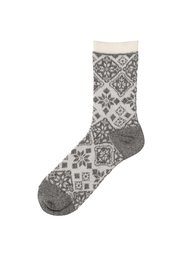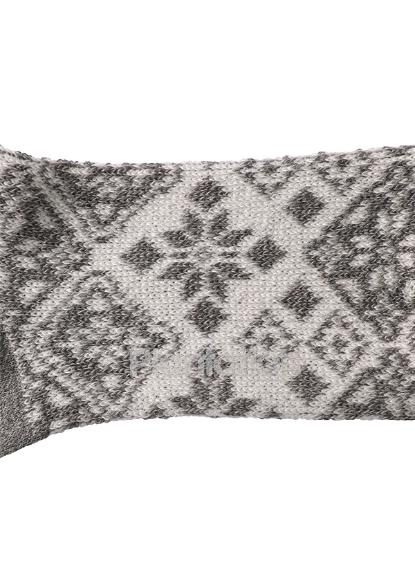 ジャガード編み機で細番の綿ウール糸を使用し編み上げました。表に使用している糸のウール糸に防縮原料を使用している為、縮みにくいのも特徴の一つです。