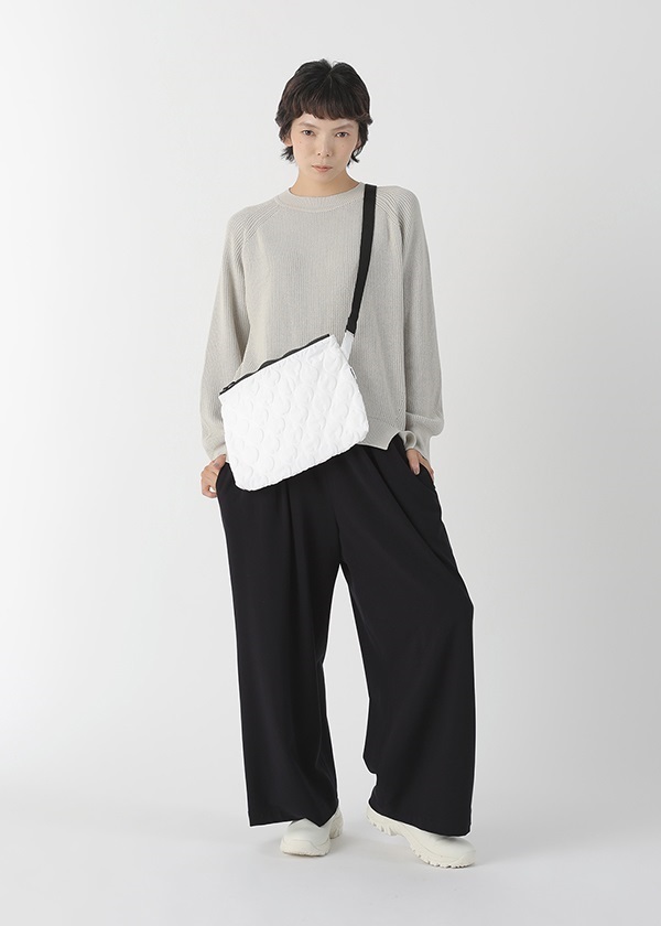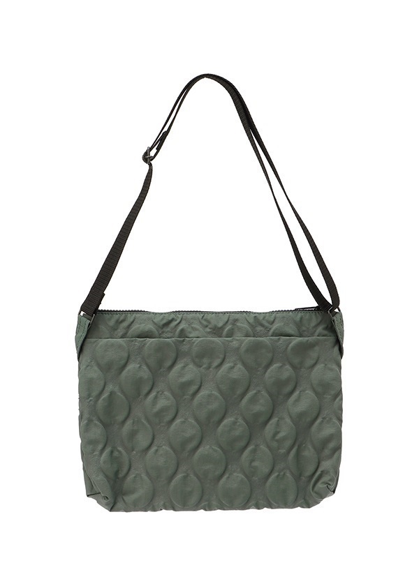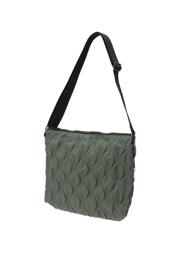 塩縮プリントで表現したドット柄の凸凹がユニークなオリジナル素材。使えば使うほど愛着の沸く凹凸感とスポーツライク過ぎないマットな生地感は、流行り廃りに関係なくタイムレスに使えるバッグです。大人カジュアルなカーキに加え、白と黒のベーシックカラー展開。