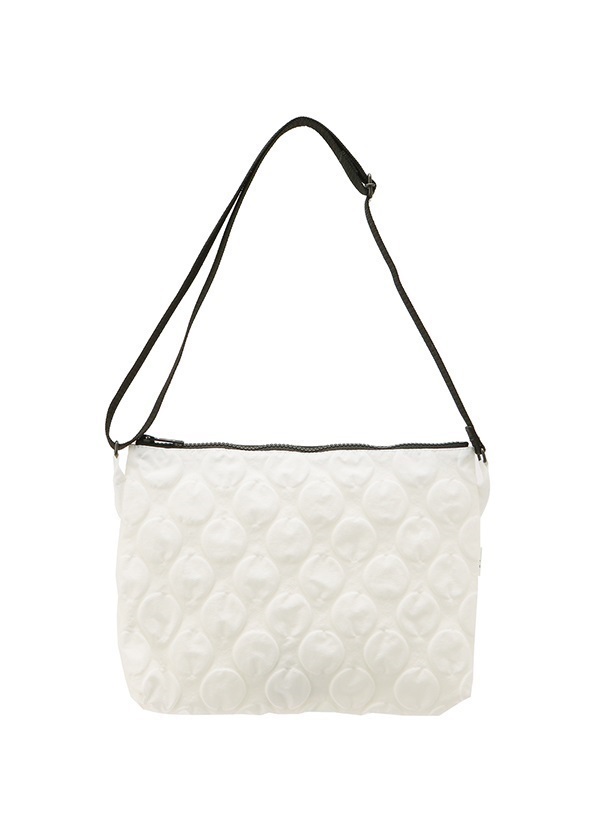 塩縮プリントで表現したドット柄の凸凹がユニークなオリジナル素材。使えば使うほど愛着の沸く凹凸感とスポーツライク過ぎないマットな生地感は、流行り廃りに関係なくタイムレスに使えるバッグです。大人カジュアルなカーキに加え、白と黒のベーシックカラー展開。