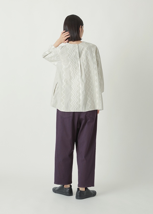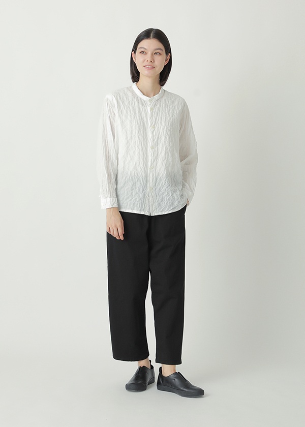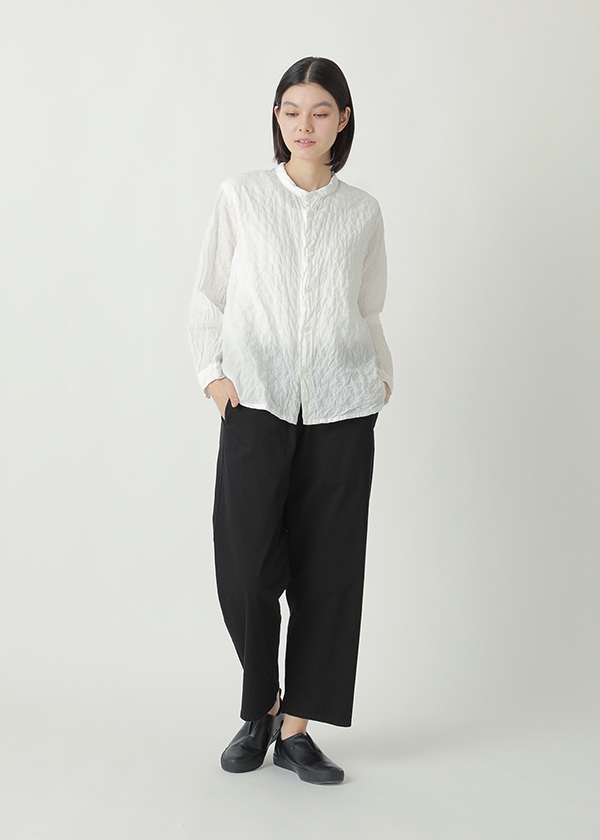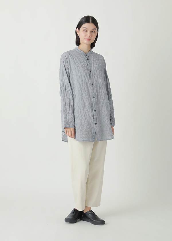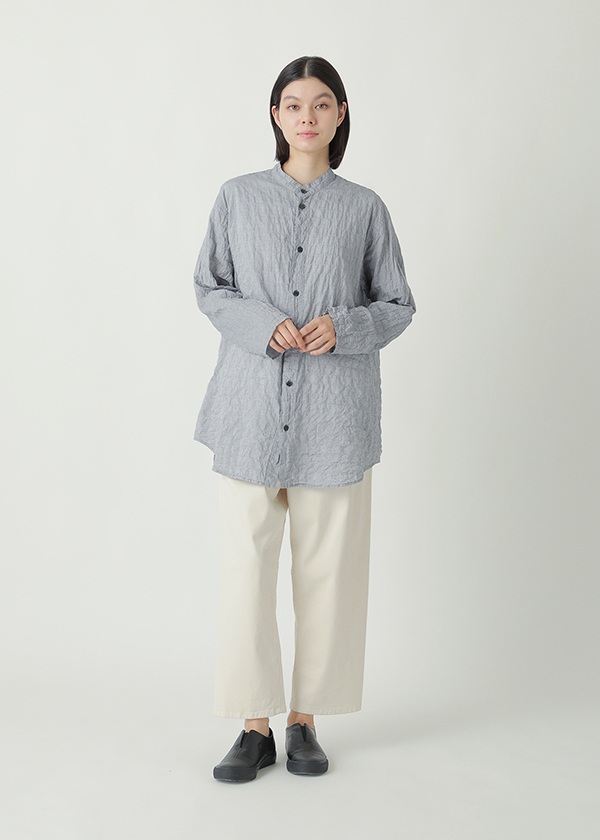 ピマ綿100%のわたをコーマ加工・コンパクト紡績をした贅沢な糸で織り上げた、プランテーション定番のハイパワーのストレッチ素材です。仕上げ加工までしっかりと手間をかけることで、シルク混のような上品な光沢を持った柔らかな生地に仕上がりました。ヨコ糸に太めの糸を入れ裏側に起毛をかけることで、春夏用よりも暖かみのある素材に仕上がりました。