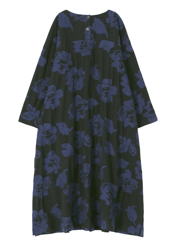 綿をベースにウール糸で花柄をカットジャカードで表現。生地洗いを加えることでウール部分が縮み、花柄が立体的に浮かび上がる奥行きある素材です。
