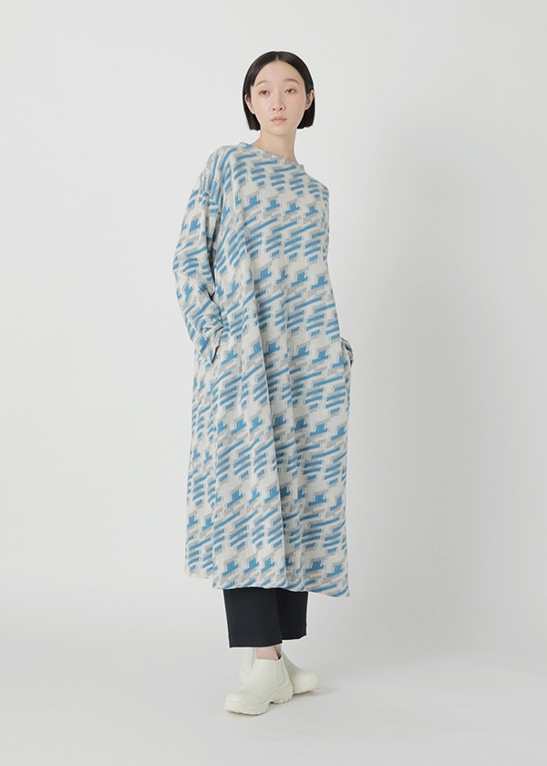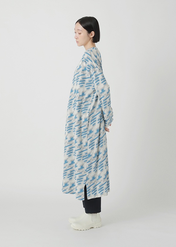 グランドと柄部分で糸の番手を変えたジャカード素材。裏糸をカットすることで、グランド部分はソリッドに凹み、柄部分は凸に盛り上がる立体感のある仕上がりに。グレンチェックではないものの、そのニュアンスがさりげなく感じられる幾何柄として「シャドーグレン」と名付けました。