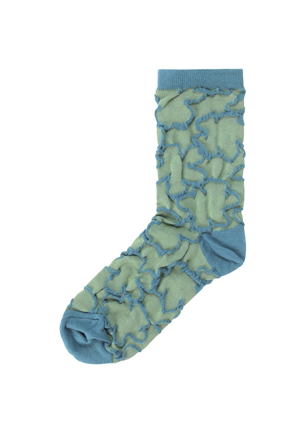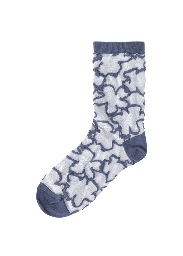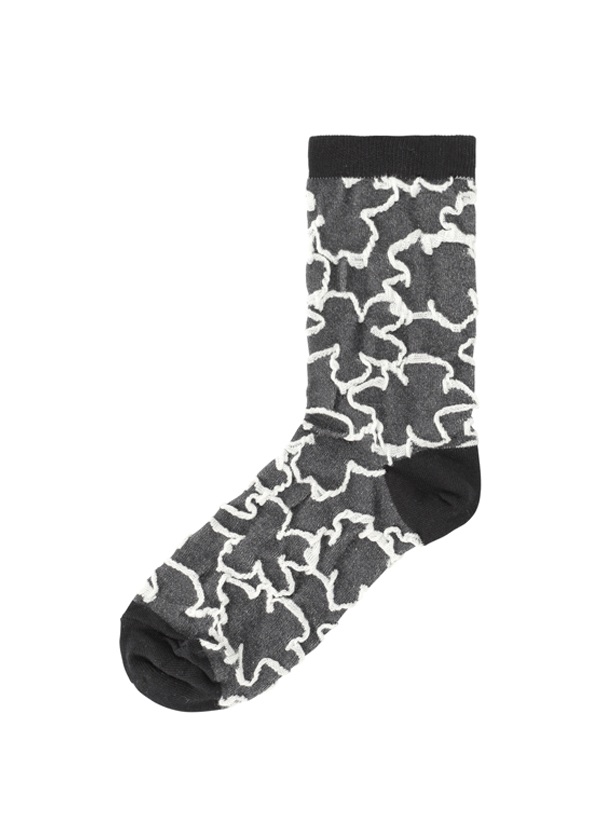 一筆書きのようなライン柄の花柄が立体的に浮かび上がるソックスです。さりげない存在感で、コーディネートのアクセントにおすすめです。
