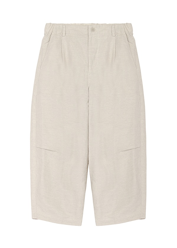 タテ糸には綿の糸を二本引き揃え、ヨコ糸にはリネン100%の糸を打ち込んで織り上げました。程よい肉感とドライタッチが特徴で、履き心地抜群のオックス素材です。