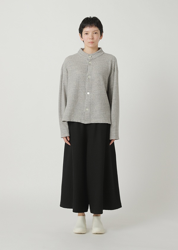 膨らみのあるウール糸と繊細なレーヨン糸を使用し、ヘリンボーン組織に織り上げました。仕上げにワッシャータンブラーで揉み込むことでヘリンボーンに立体感が生まれ、ウォーム感がある柔らかでニットライクな素材です。