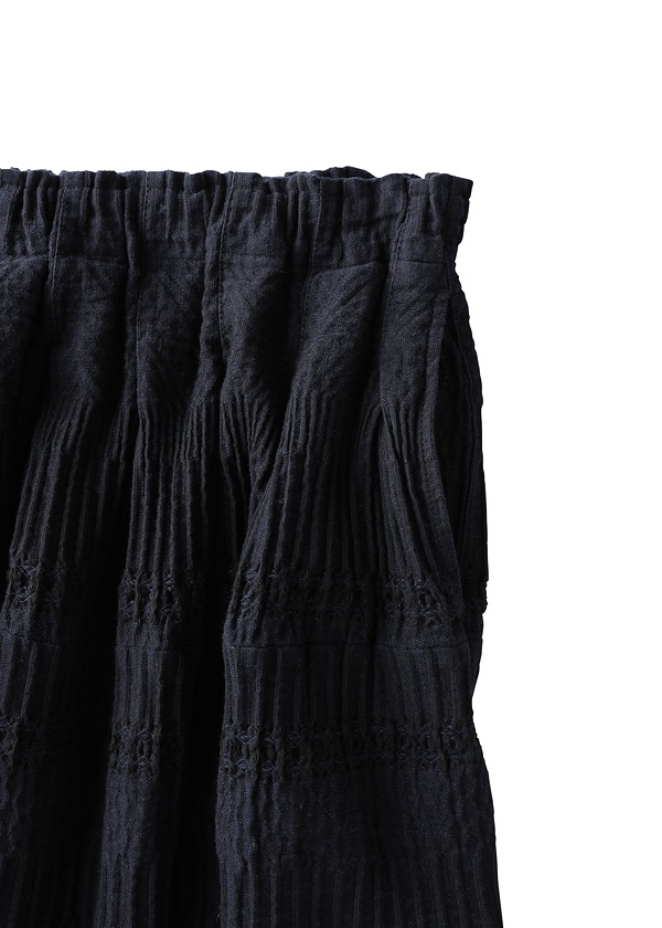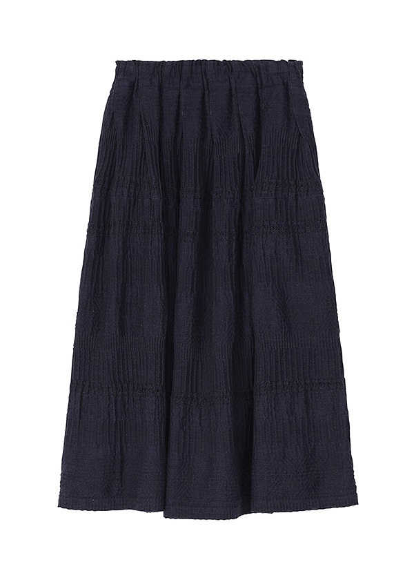 奥行きのあるクラフト感素材「BIZENポタリーウェーブ」〈素材について〉岡山地区のデニム織機で、タテ糸に綿、ヨコ糸にラミーリネンを使用して織り上げた〈WAVE〉シリーズ。製品加工によって生まれる、クラフト感のあるウェーブが特徴です。2026S/Sでは、さまざまな陶器(ポタリー)のシルエットや技法、モチーフから着想を得た柄をWAVE柄と組み合わせてデザイン。2つの異なる柄が織りなす複雑な柄域が、独特の奥行きと存在感をもたらす素材です。●関連アイテム●同素材のジャケット→CLICK同素材のパンツ→CLICK同素材のワンピース→CLICKこちらの製品は独特な風合いを出すため、製品染めを行っております。1点ごとにサイズや風合い等、特徴が異なりますのでご了承ください。ご家庭で手洗い可能です。日本製※商品のカラーは、商品単体の画像をご参照ください。