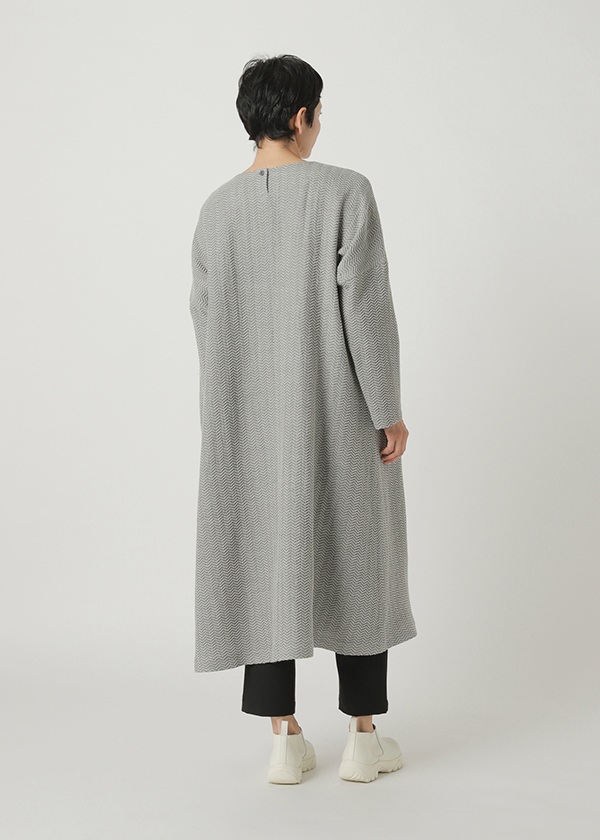膨らみのあるウール糸と繊細なレーヨン糸を使用し、ヘリンボーン組織に織り上げました。仕上げにワッシャータンブラーで揉み込むことでヘリンボーンに立体感が生まれ、ウォーム感がある柔らかでニットライクな素材です。