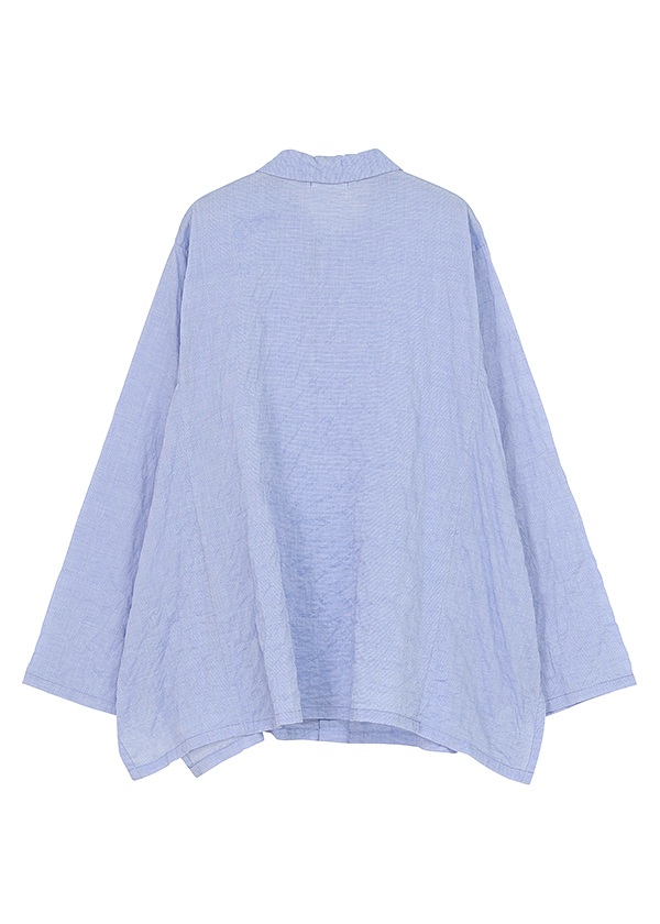 軽やかで柔らかく心地よい素材です。製品を作ってから洗いをかけることで、タテヨコにチェック状に配したストレッチの糸が縮み、動きのあるシャツ素材に仕上がりました。