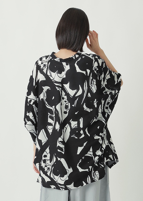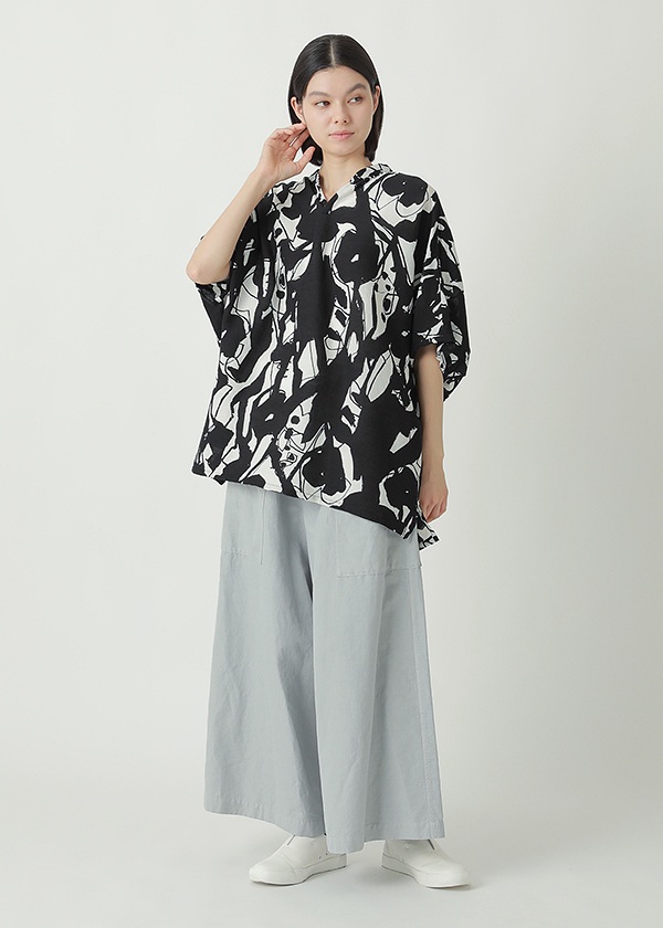 定番のYOORYUU生地に、大胆な墨絵風の花柄をプリントしました。強いコントラストが際立つ、モダンなYOORYUUプリントです。