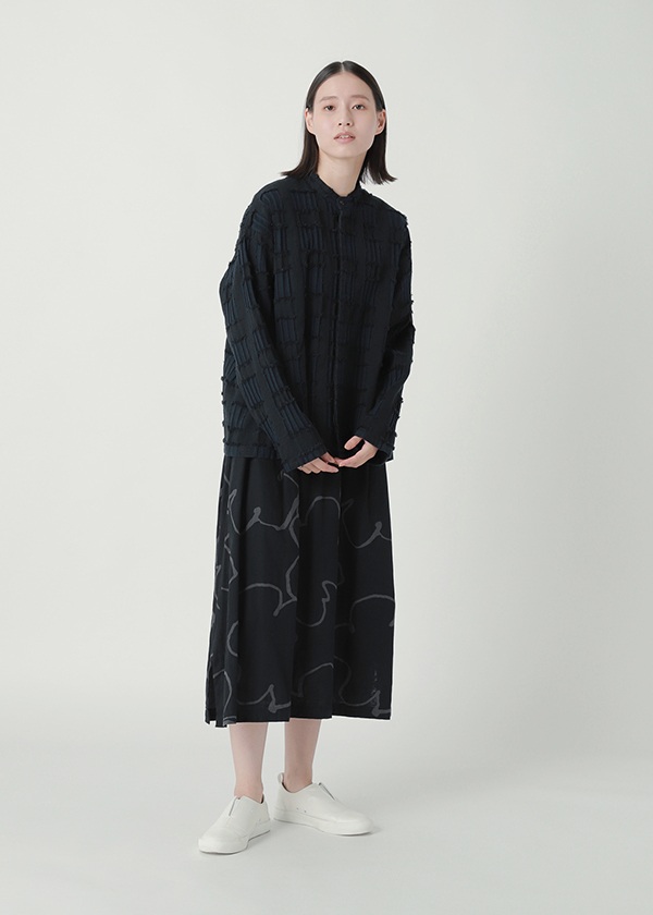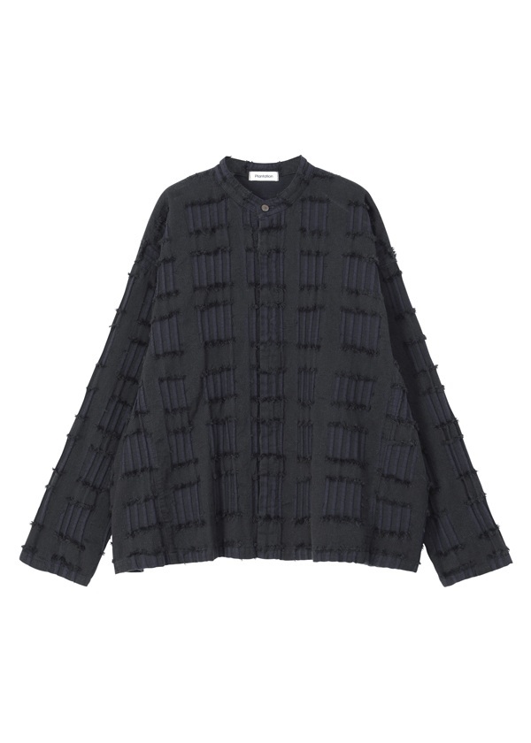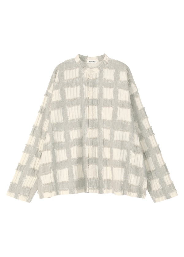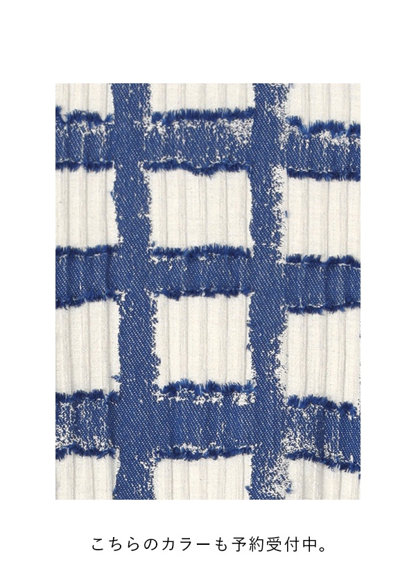 岡山地区のデニム織機で、タテ糸・ヨコ糸ともに綿糸を使用して織り上げ、製品加工によって生まれるソフトなウェーブが特徴のWAVEシリーズ。2026S/Sでは、大胆な手書き風チェック柄をジャガード織機で織り込み、仕上げにカットを施すことで、チェックの縁にフリンジがあしらわれた、華やかでモダン、そして遊び心あふれるWAVEに仕上がりました。