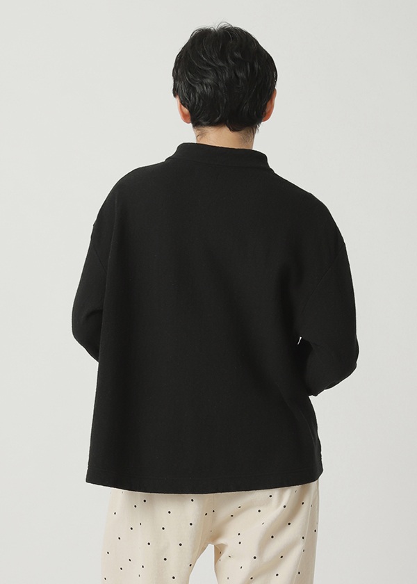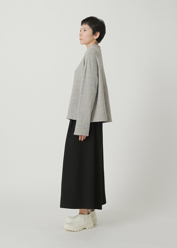 表側にはナチュラルな風合いのラフィ糸を使い、裏側には肌離れのよい編み方を施した軽やかな接結ジャージ素材です。空気を含んだようなエアリーな着心地で、快適にお召しいただけます。ニット感覚で着ていただけるウォーム感のあるジャージです。