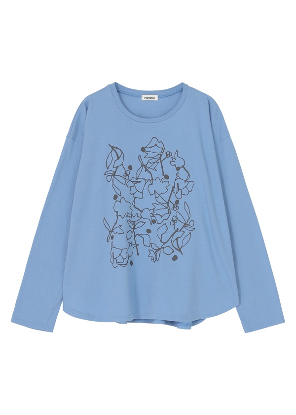 一筆書きのようなラインで描かれた花柄とドットのプリントが特徴のカットソーです。軽やかで華やかな印象を与え、ソフト仕上げにより着心地の良い柔らかな風合いに仕上げました。