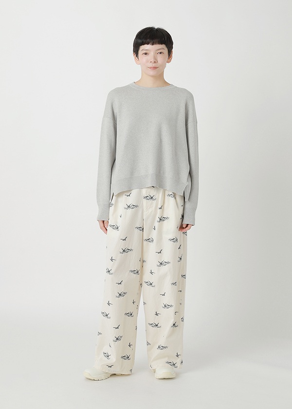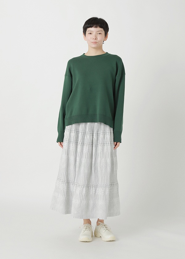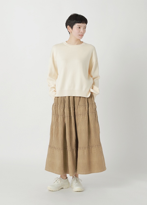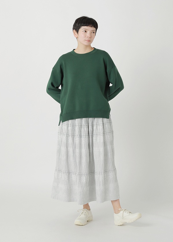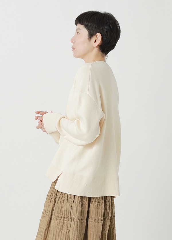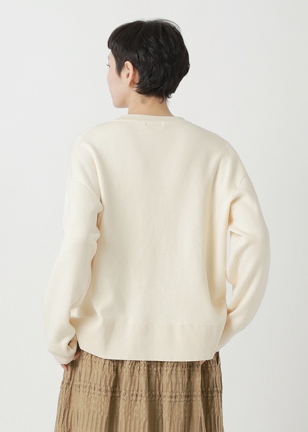 上品さを纏う、大人のスウェット「スムースニット」〈素材について〉“大人のスウェット”をテーマに、カジュアル過ぎない上品なスウェットをニットで表現しました。 綿100%のスムース組織により、ストレッチ性を備えつつハリのある仕上がりを実現しています。●関連アイテム●同素材のカーディガン→CLICKこちらの商品は、ご家庭で手洗い可能です。日本製※商品のカラーは、商品単体の画像をご参照ください。
