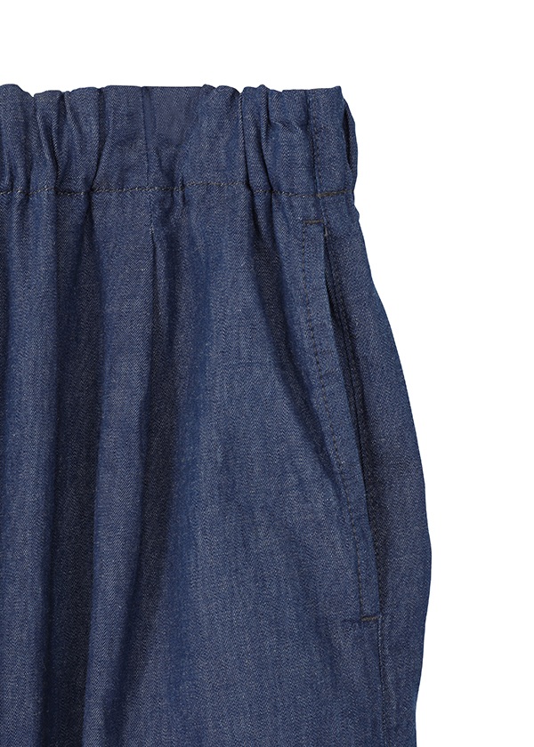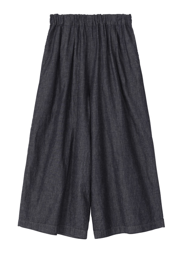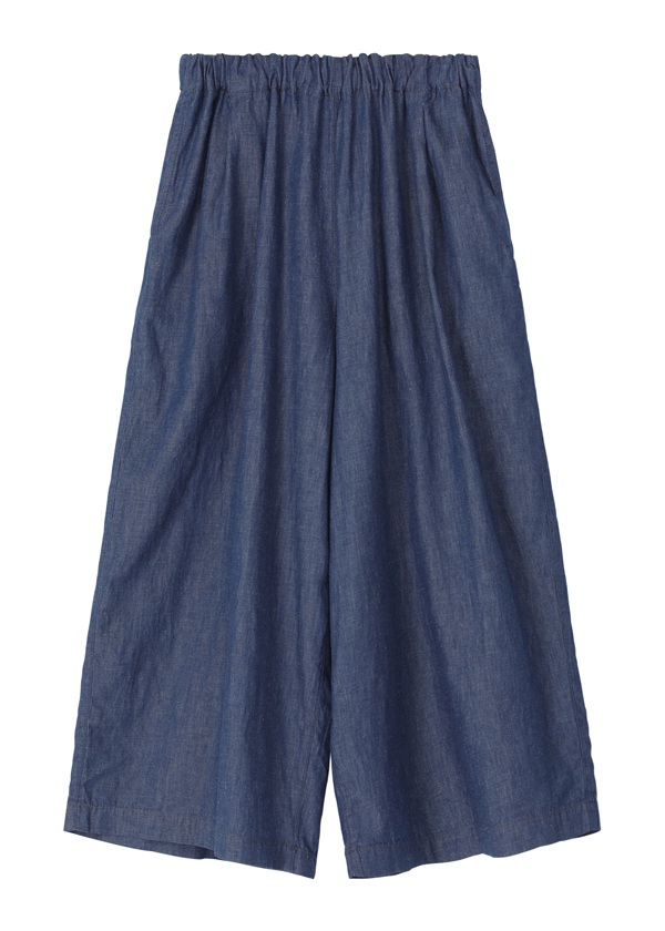 スカートライクなシルエットのゆったりとしたパンツは、風通しがよく汗ばむ時期にも心地よく着ていただけます。カジュアルな素材で着回しもきくので、毎日のコーディネートに役立つ一着です。