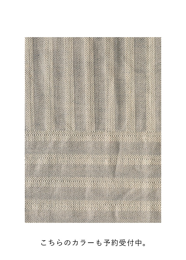 岡山地区のデニム織機でタテ糸に綿・ヨコ糸に綿麻を用いて織り上げ、製品加工施す事で生まれたソフトなウェーブが特長のWaveシリーズです。26AWではストライプとボーダーを構成したパネル柄なので、タテヨコに変化するWAVEが楽しめます。