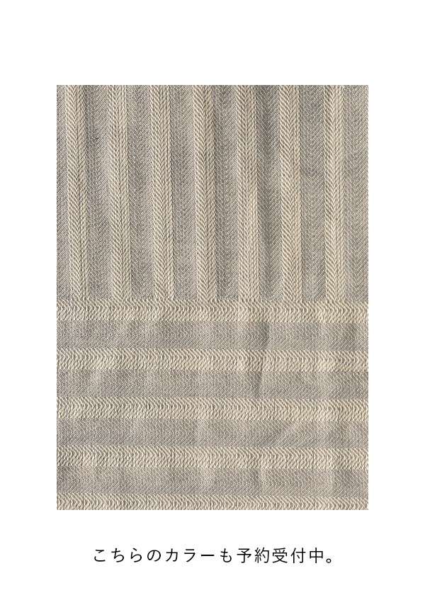 岡山地区のデニム織機でタテ糸に綿・ヨコ糸に綿麻を用いて織り上げ、製品加工施す事で生まれたソフトなウェーブとが特長のWaveシリーズです。26AWではストライプとボーダーを構成したパネル柄なので、タテヨコに変化するWAVEが楽しめます。