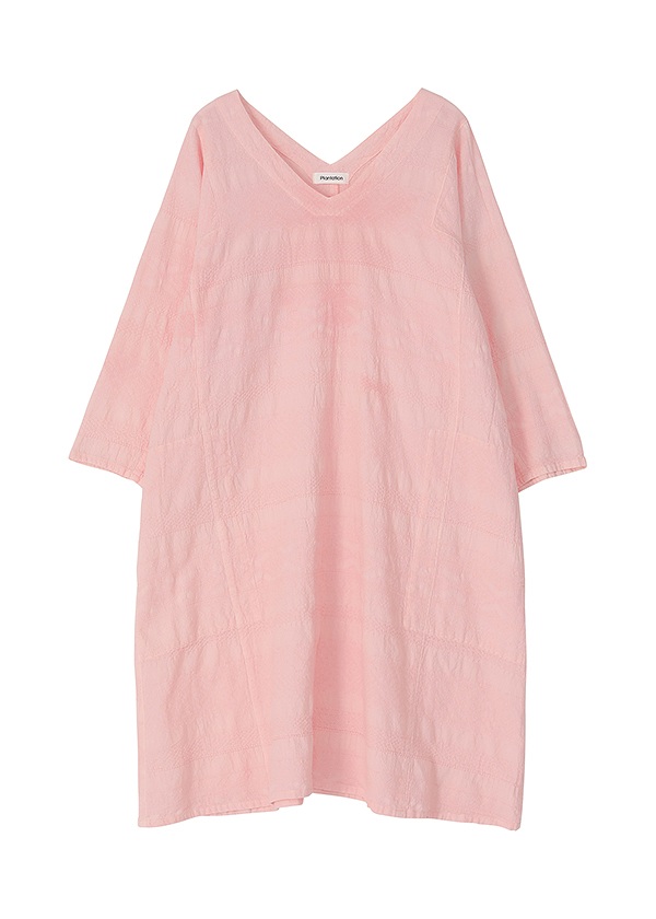 透け感のあるパナマ組織や、凹凸のある蜂巣組織など、さまざまな織り組織で柄を表現し、製品加工を施すことで繊細に柄が浮かび上がりました。光と風になじむ、柔らかく涼やかな素材です。