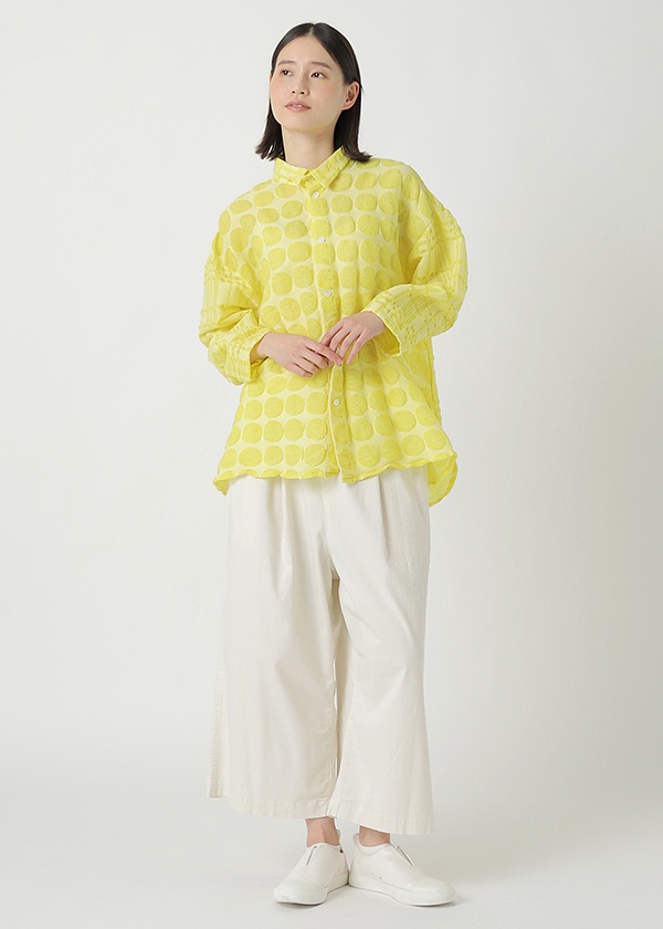 大胆なドット柄とチェック柄をドッキングした「YOORYUUドットチェックリップル」〈素材について〉リップル加工を施した大胆なドット柄とチェック柄をドッキングした、YOORYUUシリーズのニュ―フェイスです。楊柳のボーダー状の起伏の上にリズミカルにドットとチェックの凹凸が重なり、動きがある楽しい素材です。ワンピースとベストは前後に着られる2WAY使用です。●関連アイテム●同素材のベスト→CLICK同素材のワンピース→CLICK日本製※商品のカラーは、商品単体の画像をご参照ください。サンプル撮影により、サイズや仕様を若干変更させていただく場合がございます。あらかじめご了承ください。こちらの商品は先行予約対象商品でございます。ご予約の前に「ご予約商品について」を必ずご確認ください。ご予約いただいた商品の出荷手配後のキャンセル・返品はお受けしておりません。お届け後にサイズ交換をご希望の場合は、「お問い合わせ窓口」までご連絡ください。一部商品の発売日につきましては、店頭発売日と異なる場合がございます。あらかじめご了承の上、ご予約くださいますようお願い申し上げます。【配送について】商品の発送は、7月中旬前後を予定しております。