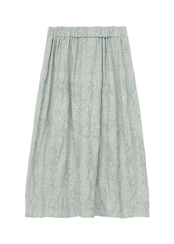 丸胴状に編み立てた生地を使用したスカート。花畑をイメージしたパネル柄が特徴で、2パネル使いにより程よいボリューム感のあるシルエットに仕上げています。