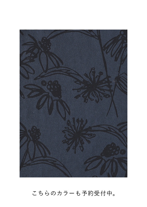 一面に広がる花々を線画のタッチで表現しました。ソフト仕上げで着心地の良い柔らかな風合いの素材です。