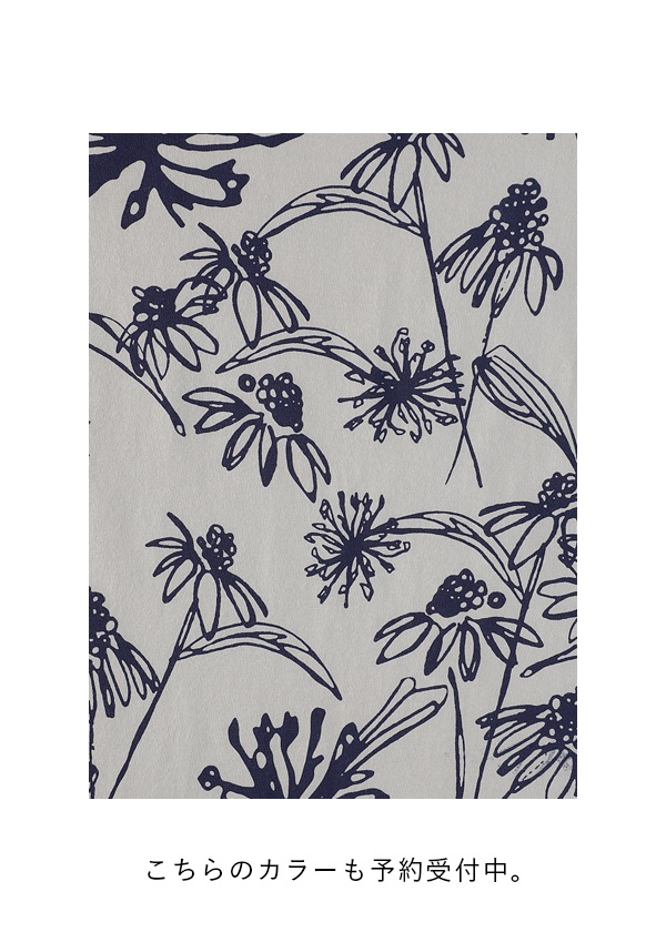 一面に広がる花々を線画のタッチで表現しました。ソフト仕上げで着心地の良い柔らかな風合いの素材です。