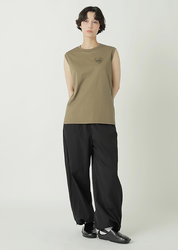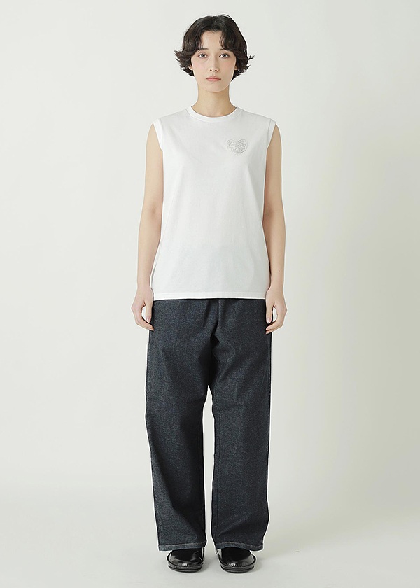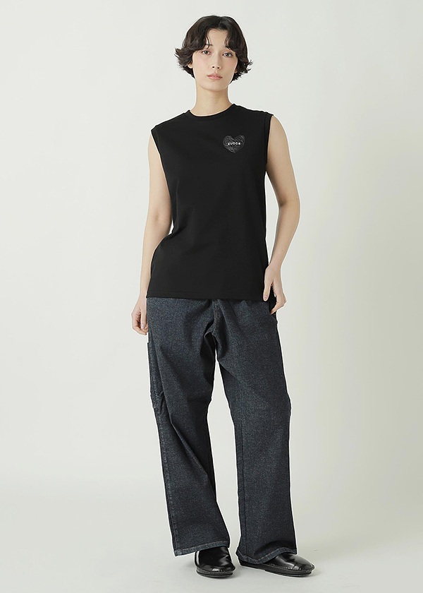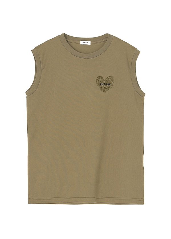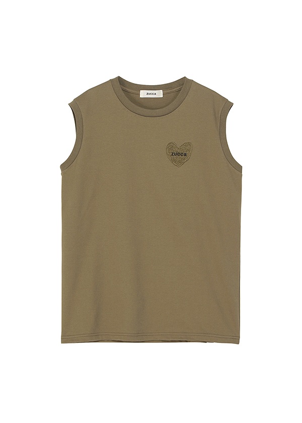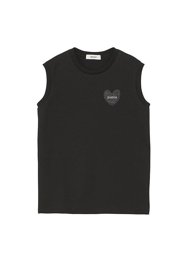 -前面に配置されたハートの刺繍がアクセントのノースリーブトップス