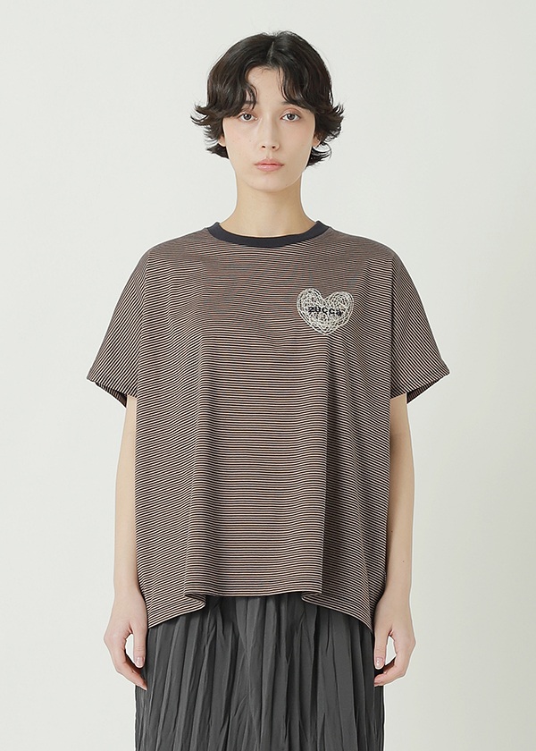 -前面に配置されたハートの刺繍がアクセントのTシャツ。