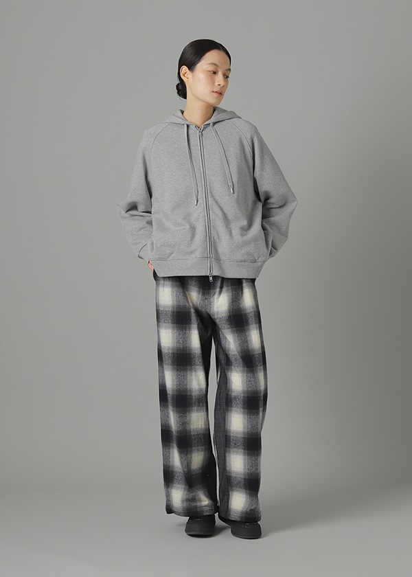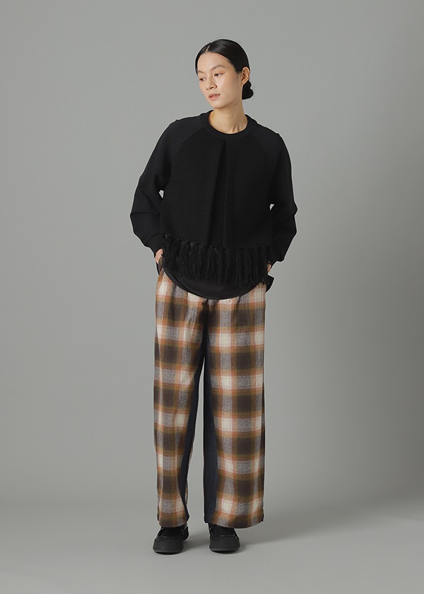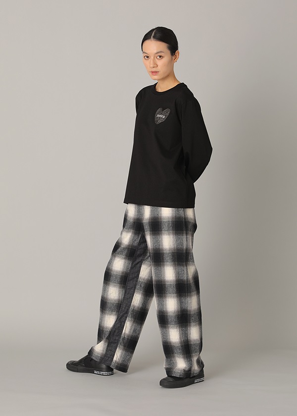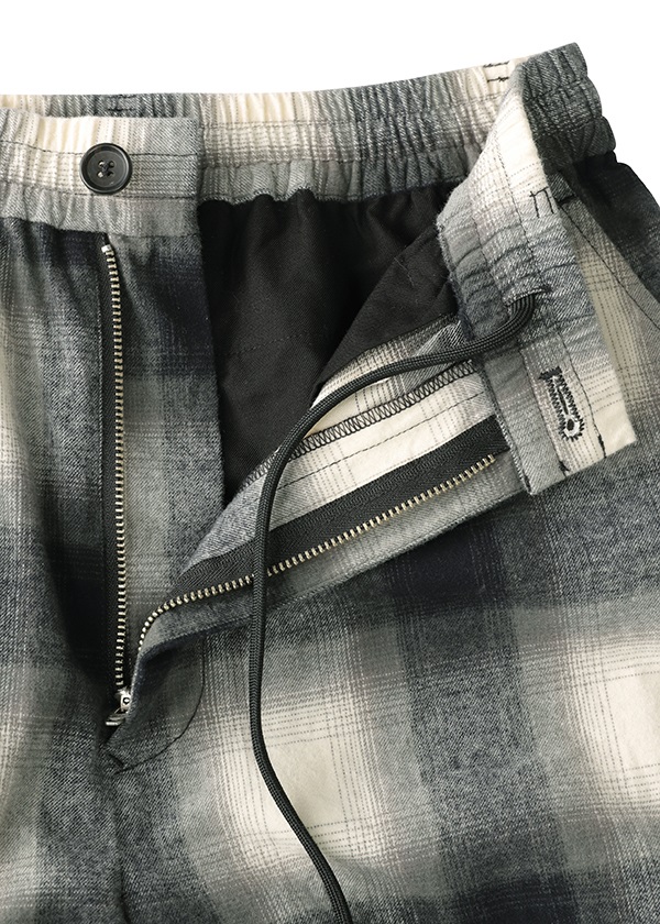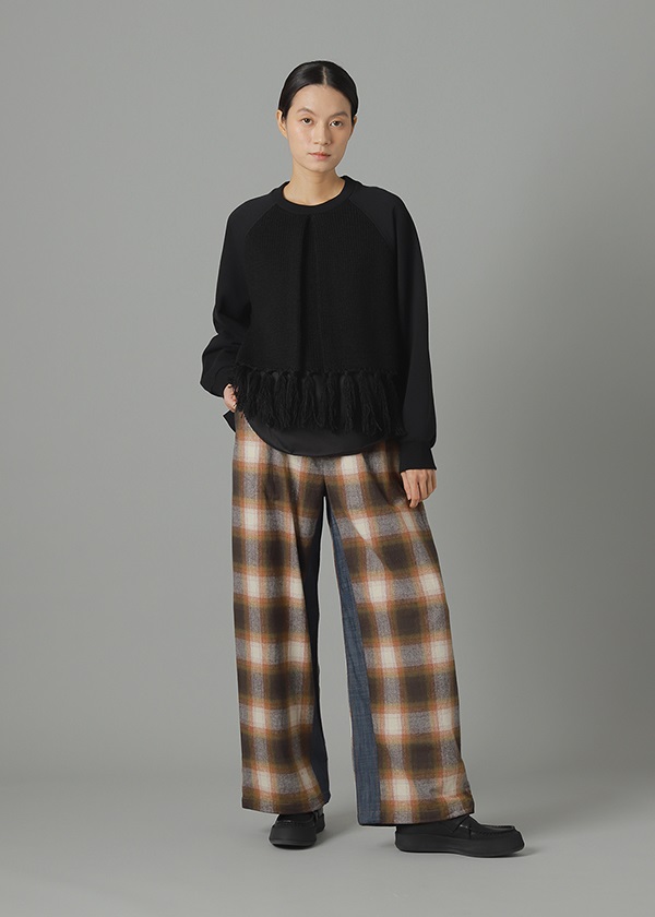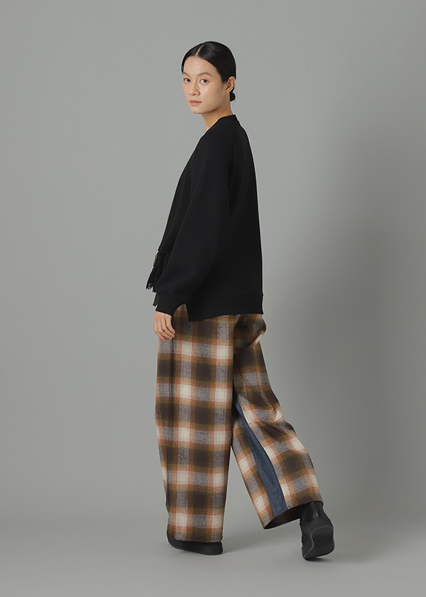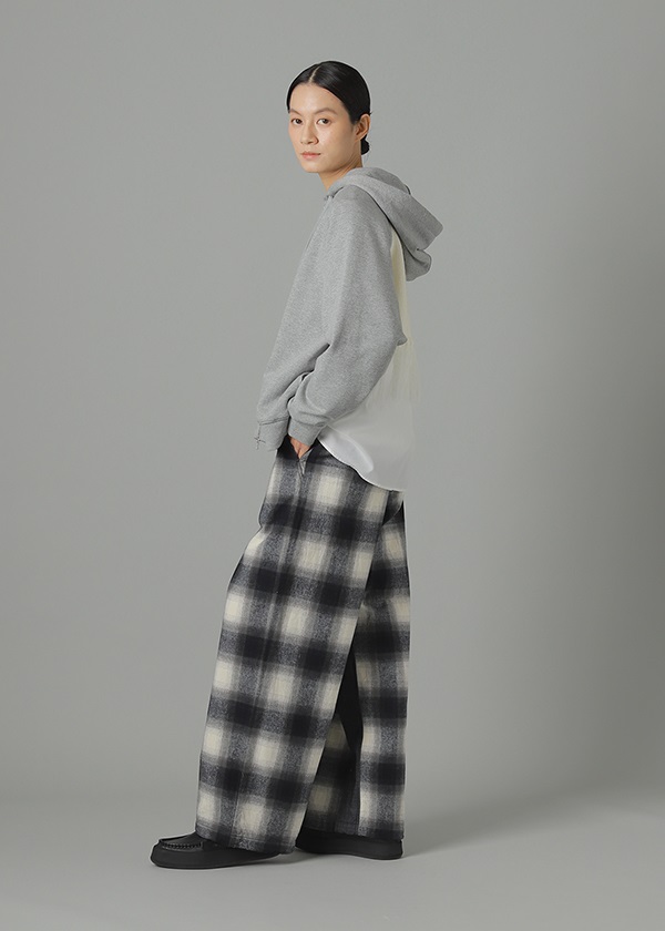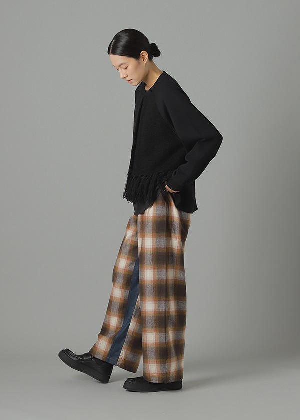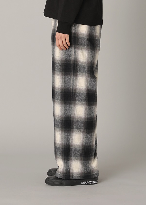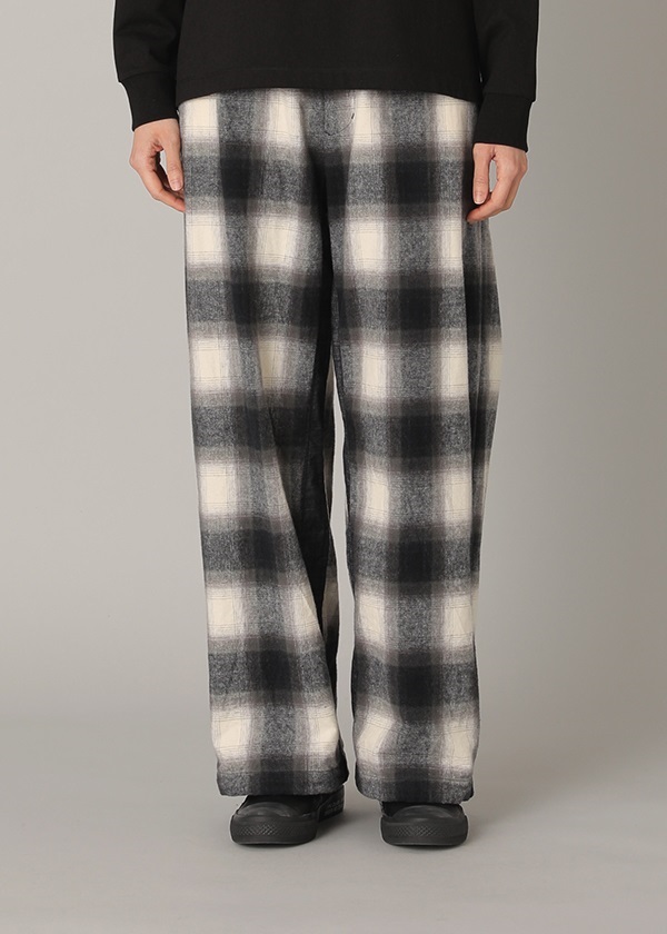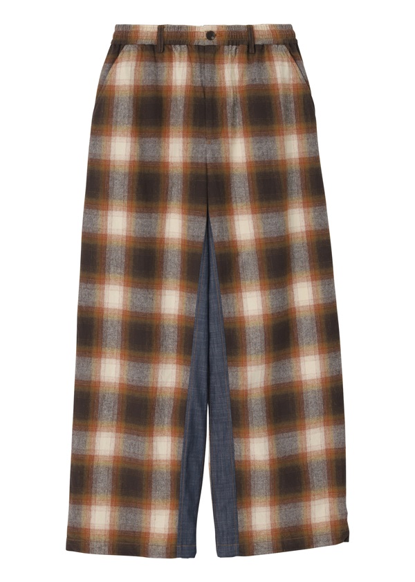 -オリジナルで作製したグラデーション調のネルチェックを使用したワイドシルエットパンツ。