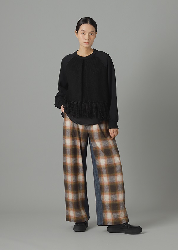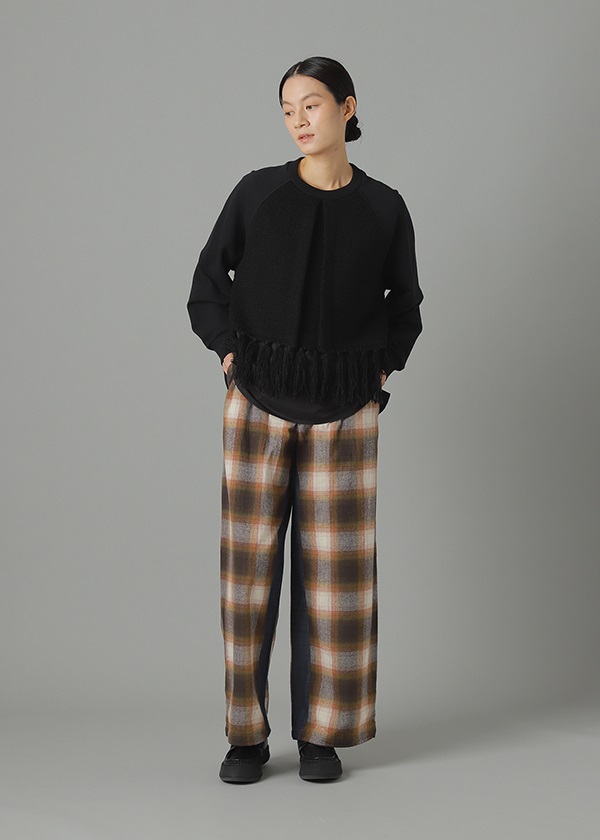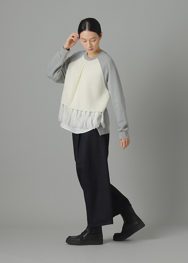 -前身頃のフリンジの付いたニットがポイントのスウェット。