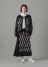 -左部分にはインド伝統工芸の手彫りの木版で生地プリントする、ブロックプリントにインスピレーションを受けた柄のニットを使用、右部分にはプリーツ加工が施されたフェイクレザーを使用して、アシンメトリーな独特なコントラストを演出しています。