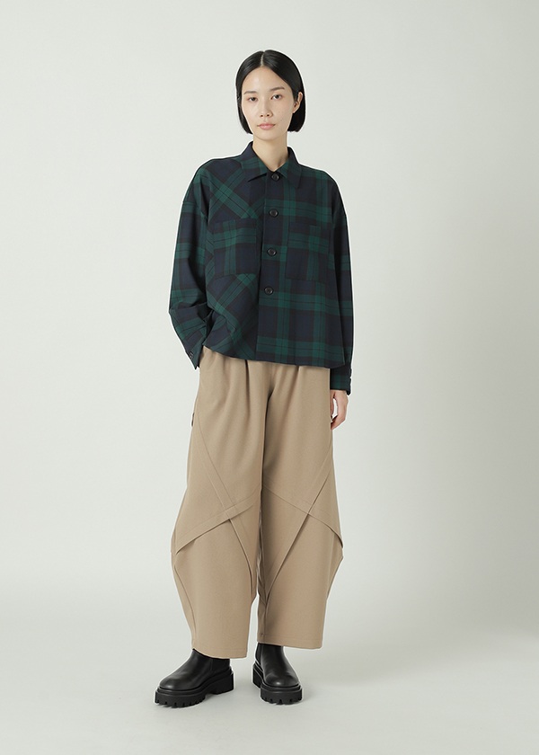 -ポリエステル・ウール混でシワになりにくく、薄手ながら暖かみのある素材。