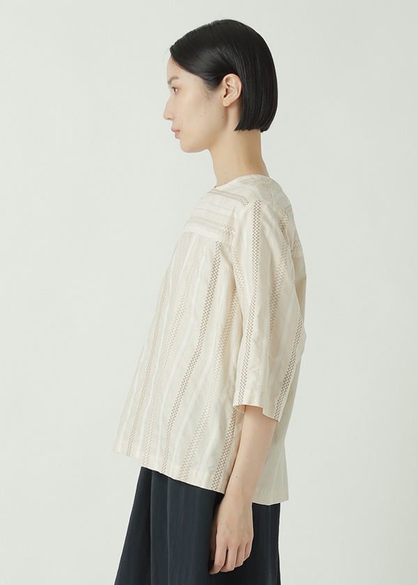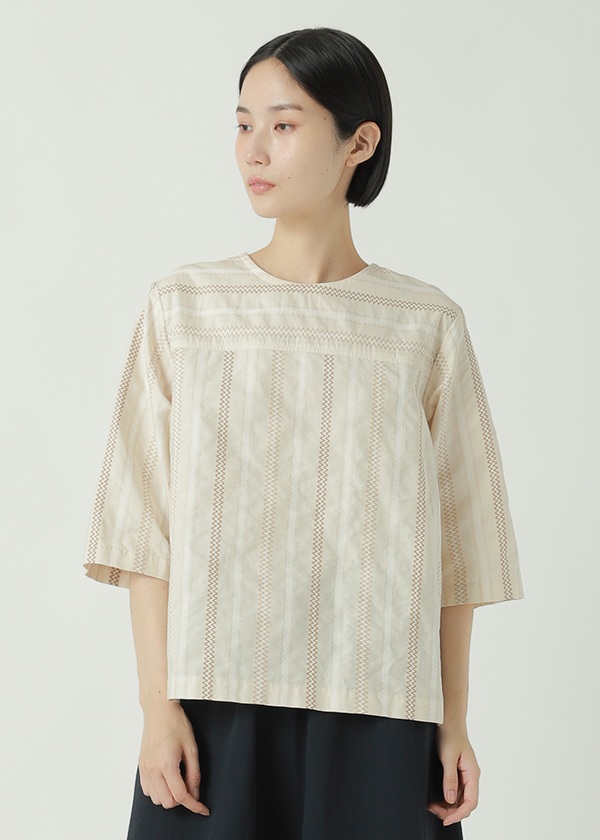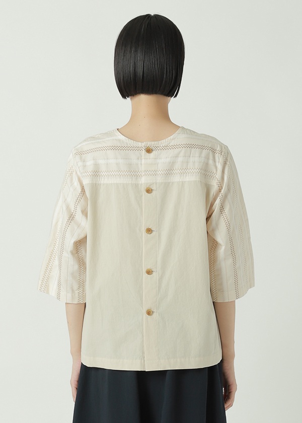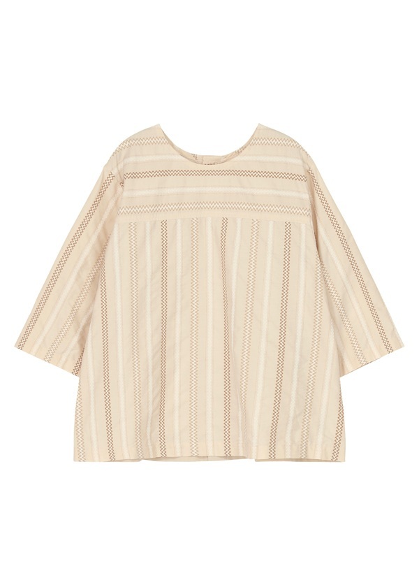 -ストライプと無地を切り替えたプルオーバーブラウス。
