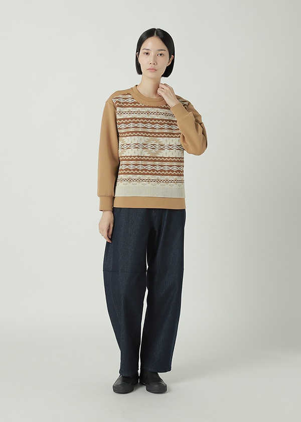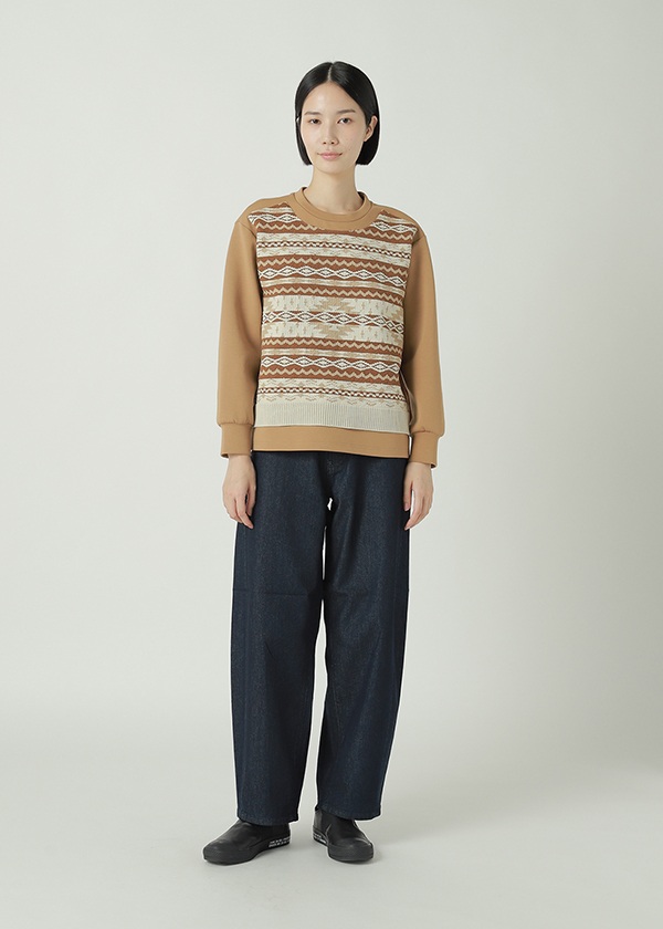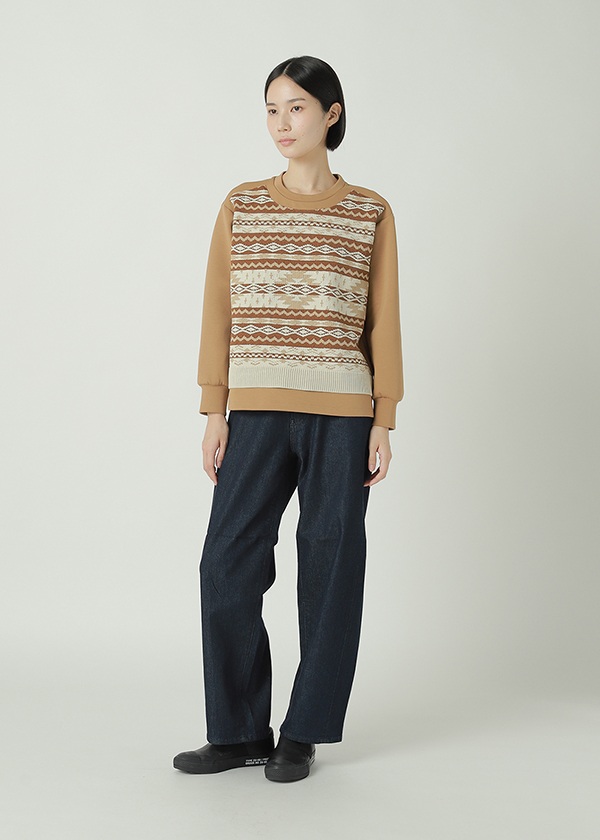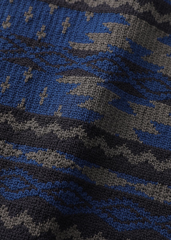 -エスニック調の幾何学柄ジャカードが特徴のトップス。