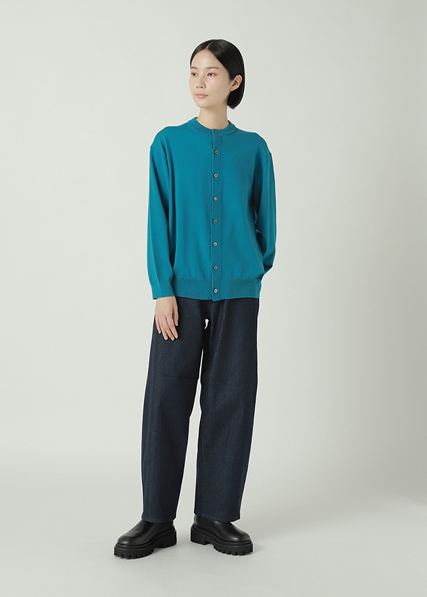 -ミニマルな印象のシンプルな丸首カーディガン。