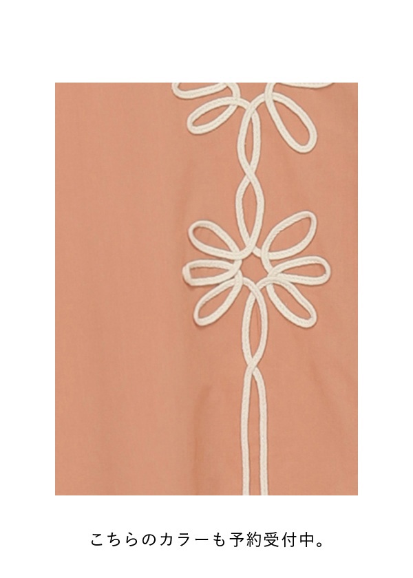 -袖には立体感のある8枚花びら(ユイットペタル)のコード刺繍モチーフを配置