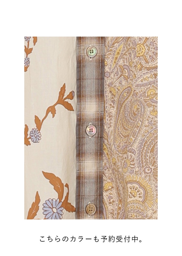 -ペイズリーや植物柄、チェックなどの異なるパターンを左右非対称に大胆に配置