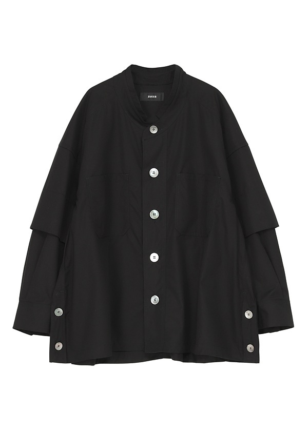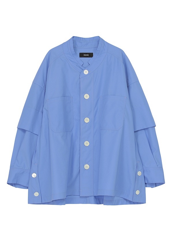 -ビッグサイズのデザインシャツで、台衿に小さな襟羽や二重仕立ての袖など、ZUCCaらしいディテールを随所に配置